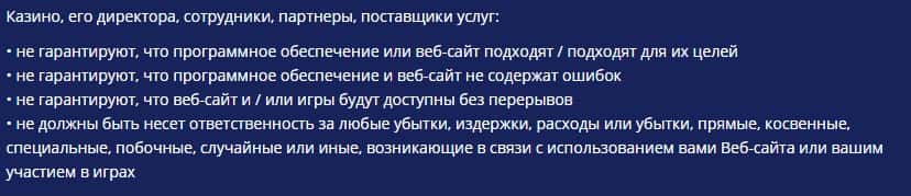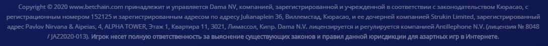 Также недоказино BetChain не несет ответственности за какие-либо дефект и нестабильность, которые могут привести к потери денег со стороны клиента.