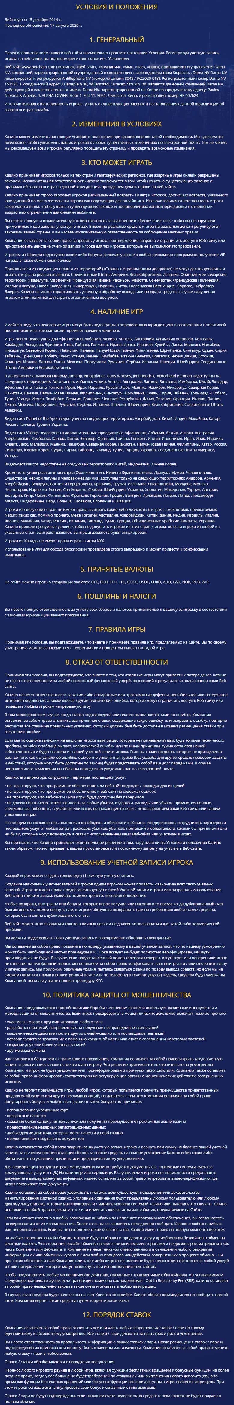 Ниже представлена полная версия клиентского соглашения аферистов Бет Чайн, где указано определенно все нюансы, которые ожидают каждого клиента в процессе игры.