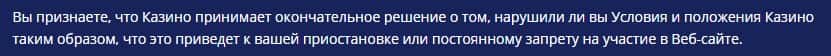 Каждый клиент в тоже время должен признавать, что именно контора Бет Чайн принимает решение касательно понимания нарушил ли кто-то правила, либо нет.