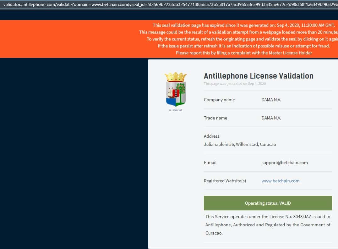 Касательно лицензии конторы BetChain, здесь мошенники указывают, что она выдана некой компанией Antillephone License Validation, но такую лицензию может купить любой желающий.