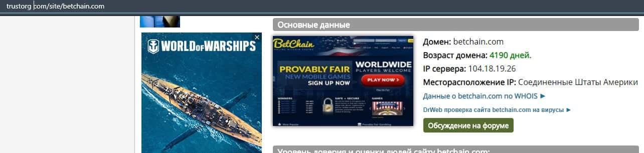 Далее вы можете ознакомиться с возрастом домена сайта мошенников BetChain. На момент написании материала он составляет 4190 дней, поэтому их скорее всего купили.
