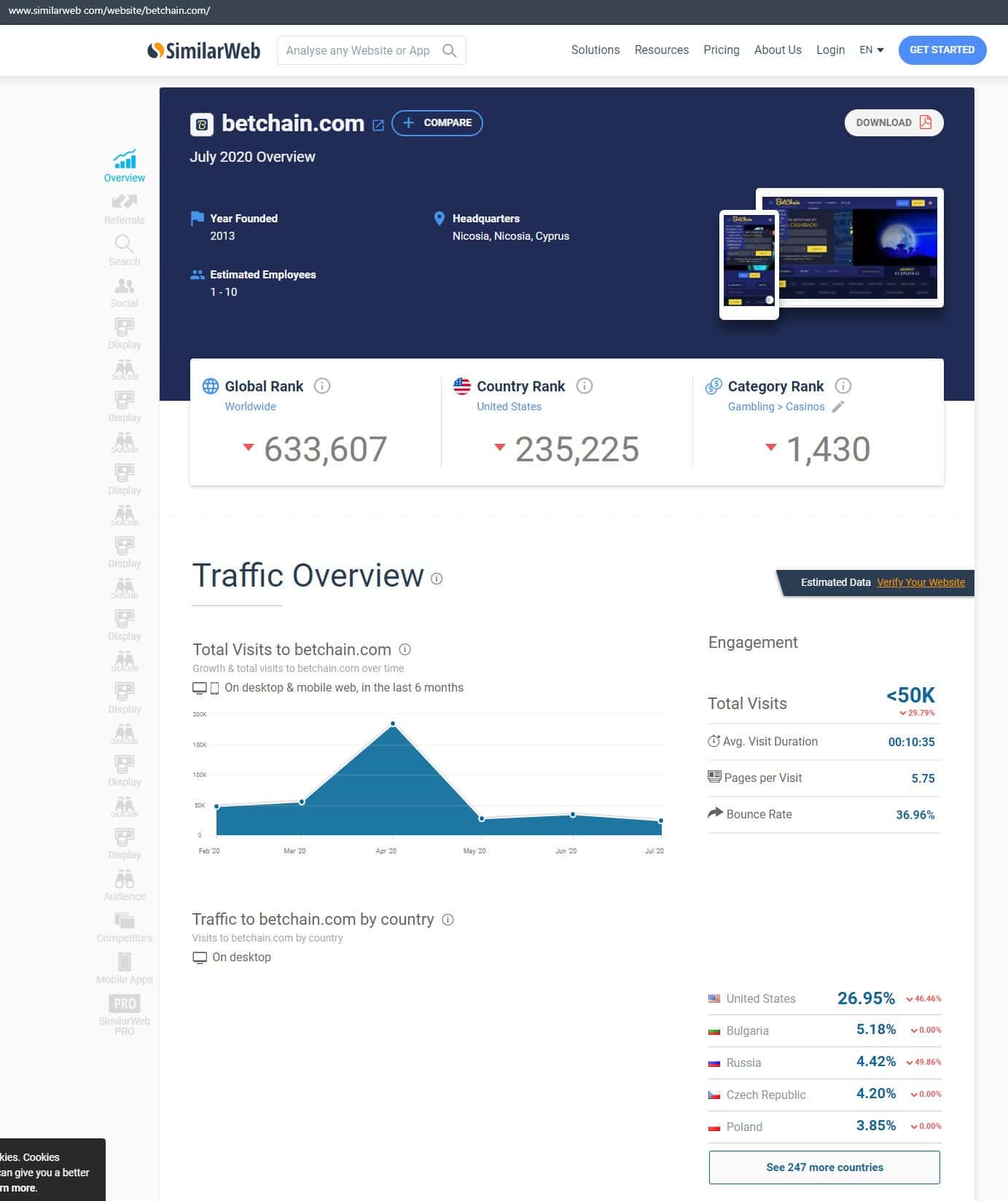 Исходя их данных по источникам трафика, Россия также не занимает последнее место в это списке, а это значит, что казино BetChain грабит также и русскоязычное население.