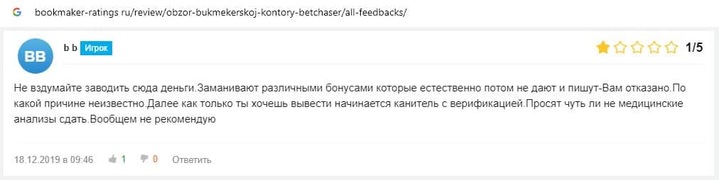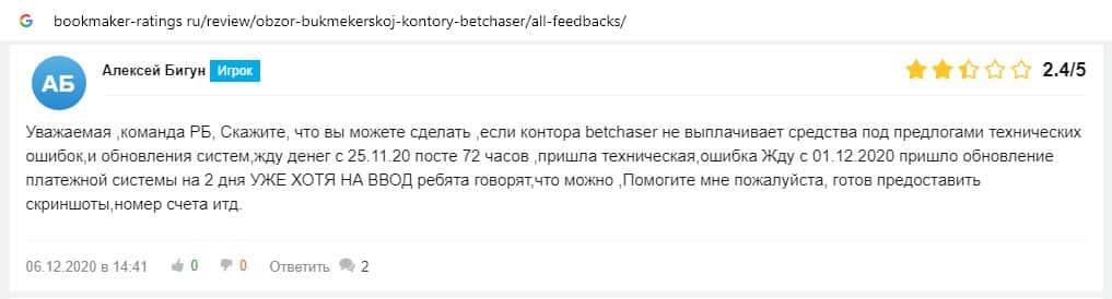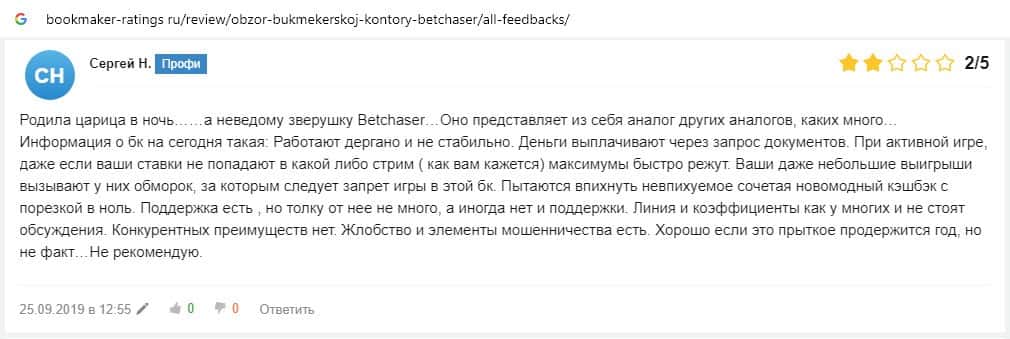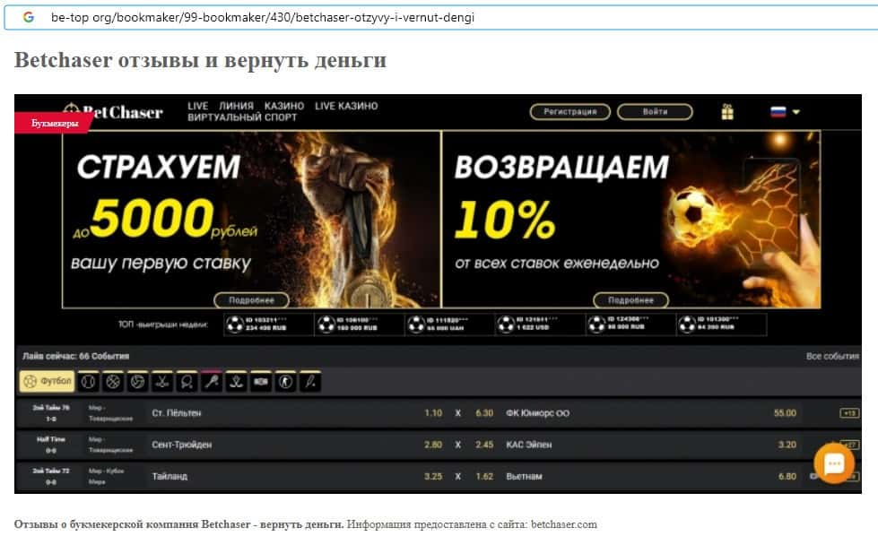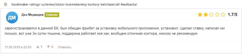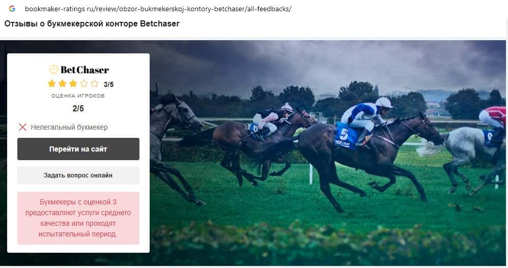 - Bet Chaser - обзоры аферистов расположены на других онлайн-ресурсах
