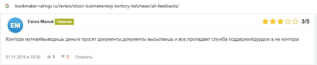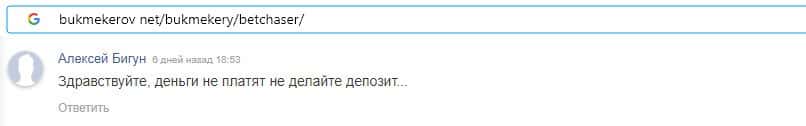 Обманщики Бет Чизер не выводят даже обещанный минимум, подтверждением этому является пользовательский отзыв предоставлен на скриншоте ниже.