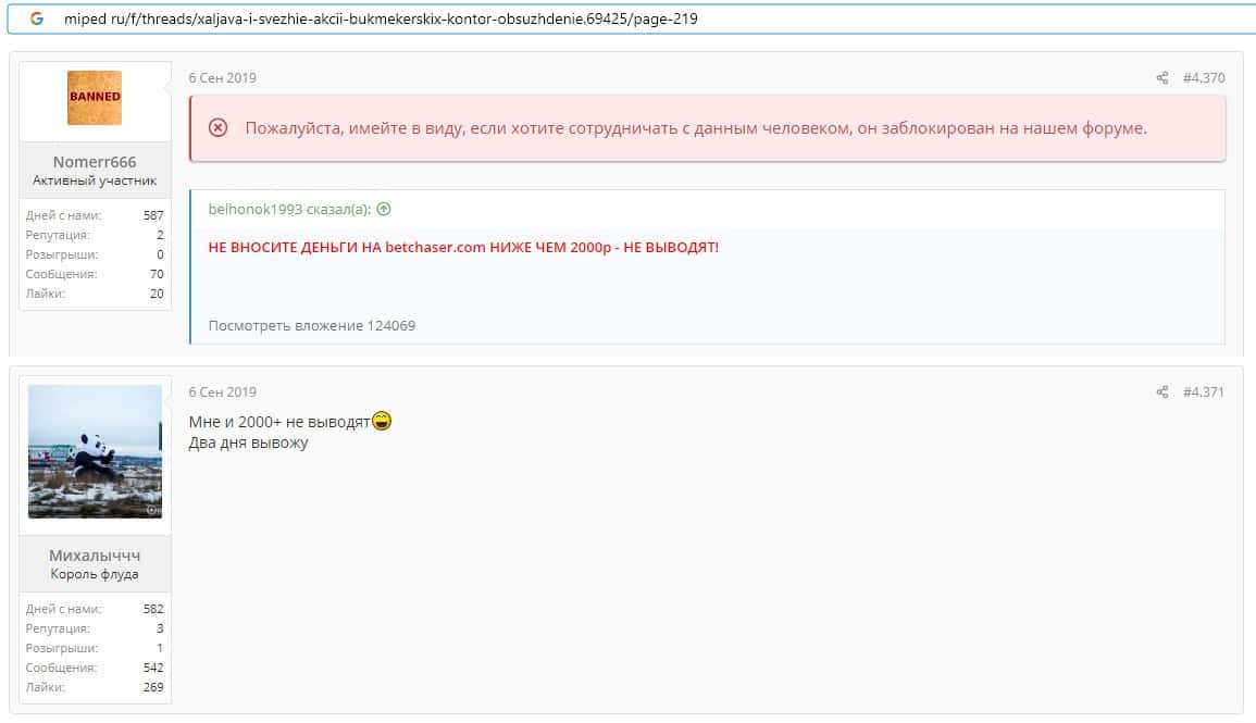 Сведения об ворах BetChaser надобно распространять МАКСИМАЛЬНО массово, для того чтобы обезопасить от их рук своих сограждан.