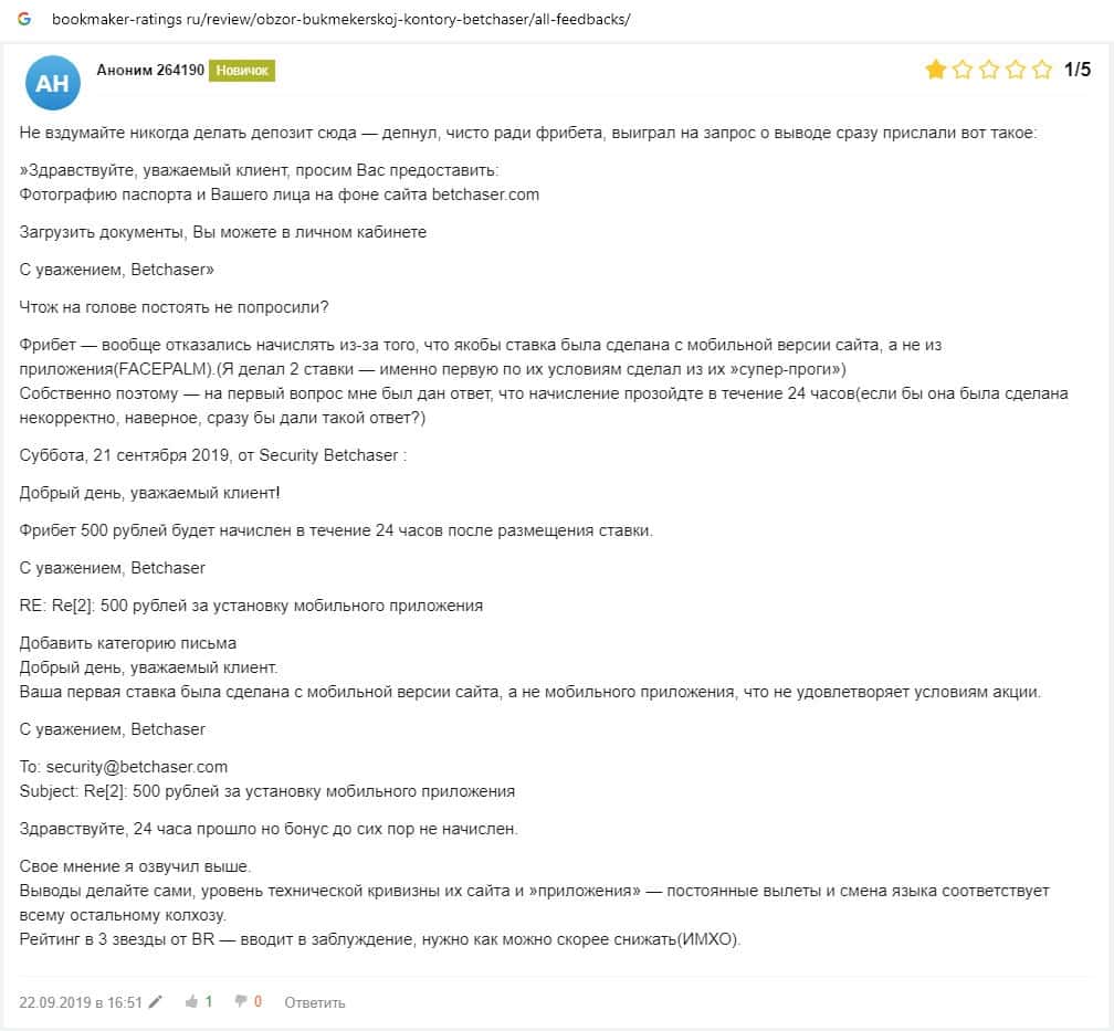 - Жулики Bet Chaser вешают лапшу на уши о начислении бонусов