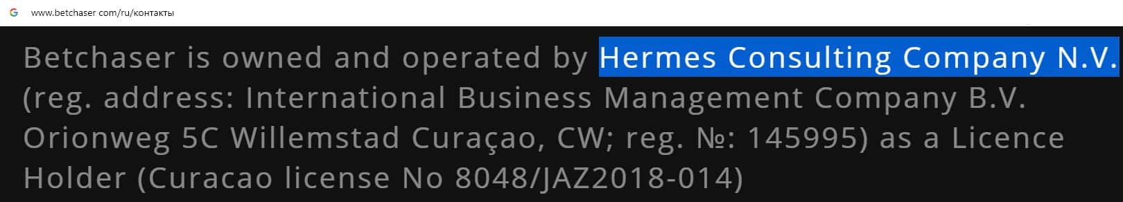 Юридическое лицо Hermes Consulting Company N.V. владеет мошенническим сервисом betchaser com, компании Бет Чизер, у которой оффшорная регуляция.
