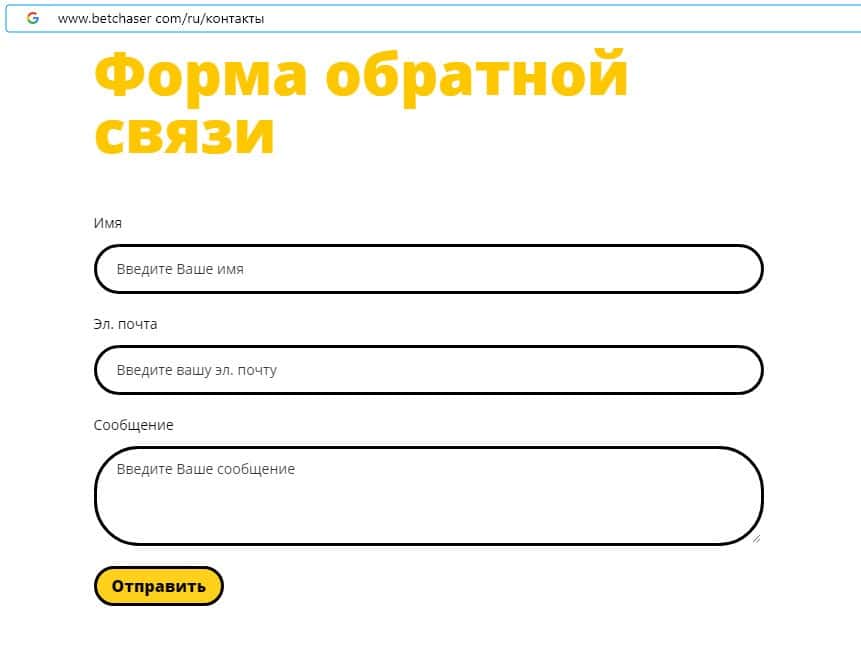 Аферисты Bet Chaser ведут сбор данных о посетителях своего дырявого сайта, просят указать свой адрес электронной почты в качестве обратной связи.