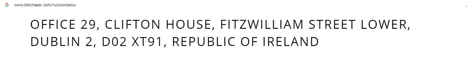 Местом регистрации Bet Chaser является оффшорное государство Кюрасао, где зарегистрировано огромное количество аналогичных онлайн-лохотронов.