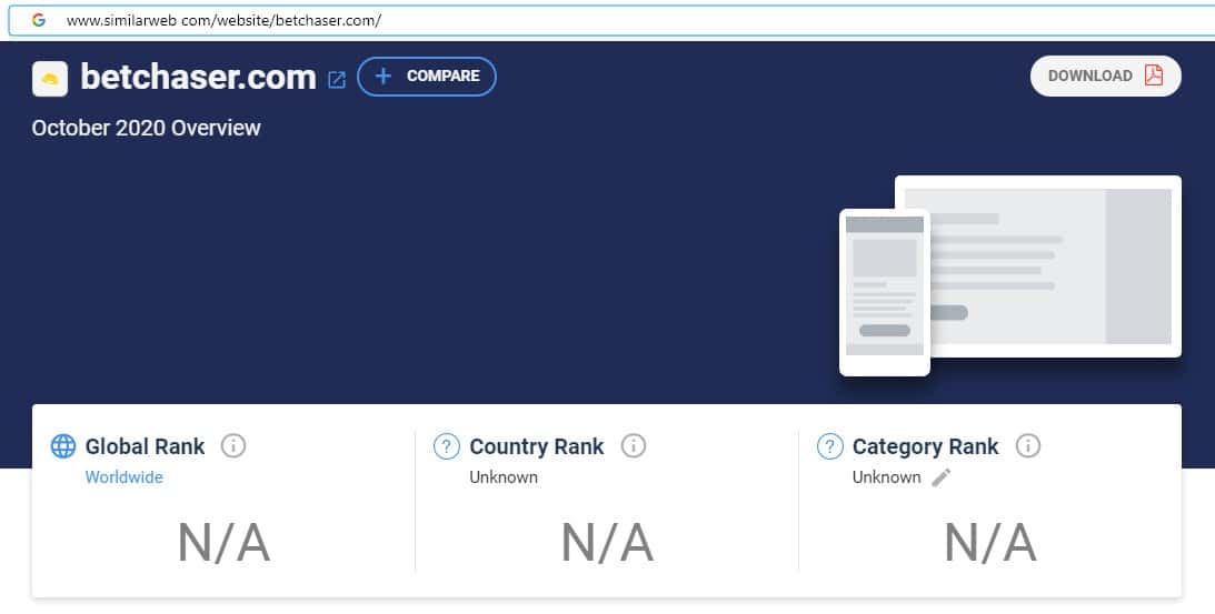 При проверке источников бренда по странам компании Bet Chaser на сайте similarweb com, информация отсутствует, что является признаком фейкового лохотрона.