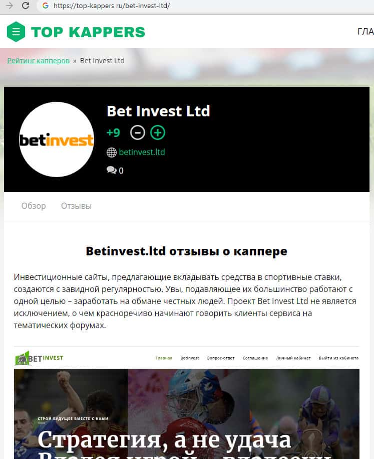 - По мнению портала top-kappers ru проект БетИнвест лтд - сплошной обман и надувательство