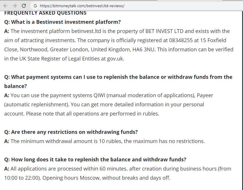 Портал bitmoneytalk com купился и разместил на своих страницах рекламный обзор мошеннического проекта БетИнвест лтд. В этой статье рассказана байка о том, как в течение шести лет команда профессионалов Betinvest ltd (не путать с Bet Invest ltd, имеющей портал Betinvest com) заботится о процветании своих инвесторов.