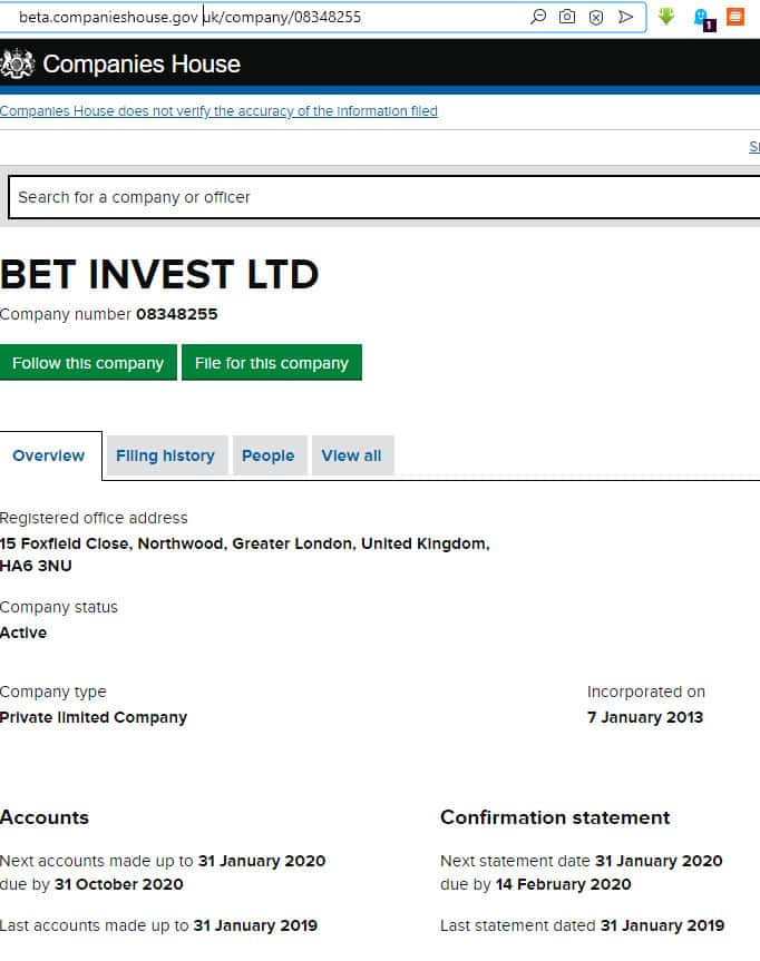 Мошенники из БетИнвест лтд, набрались наглости и сообщают всему сообществу, что имеют прямое отношение к вышеупомянутой компании (Betinvest com), указывают её адрес и её регистрационные данные, имеющей действительную регистрацию в Англии, но ни слухом, ни духом не ведающую о её "последователях".