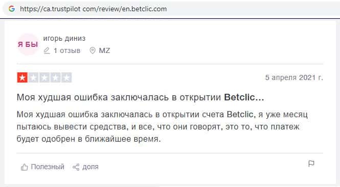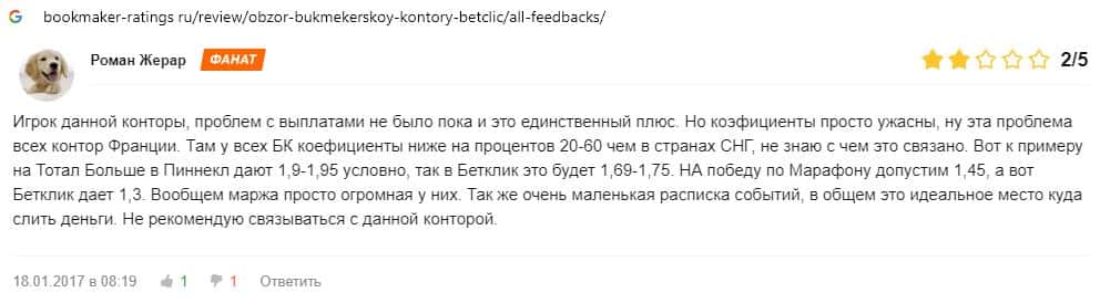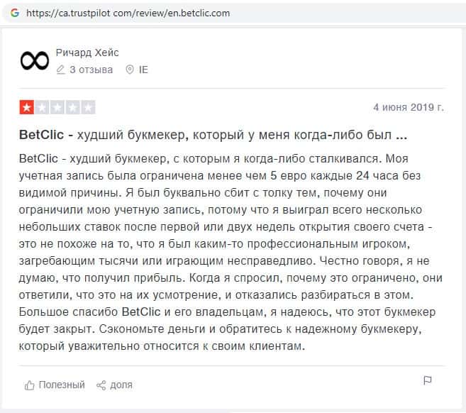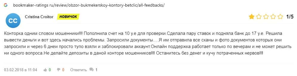Ниже предоставлен еще один отзыв о букмекерской конторе BetClic, которой пользователи всемирной паутины не доверяют.