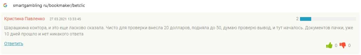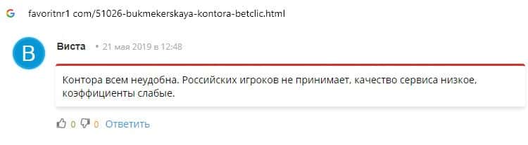 - Букмекерской конторе Бет Клик пользователи не доверяют