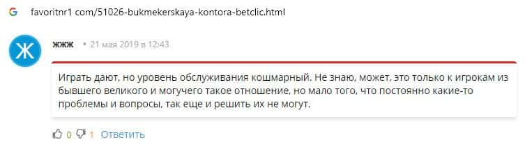 Отзывы о букмекерской конторе Бет Клик, ныне присутствующие в сети
