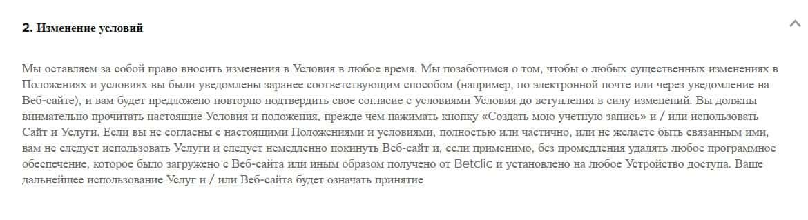Шулера BetClic имеют право изменять правила пользования сайтом без предварительного уведомления об этом пользователей сайта.