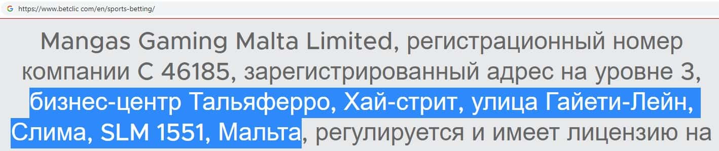 Аферисты BetClic указали адрес места регистрации своей компании, который наверняка липовый: