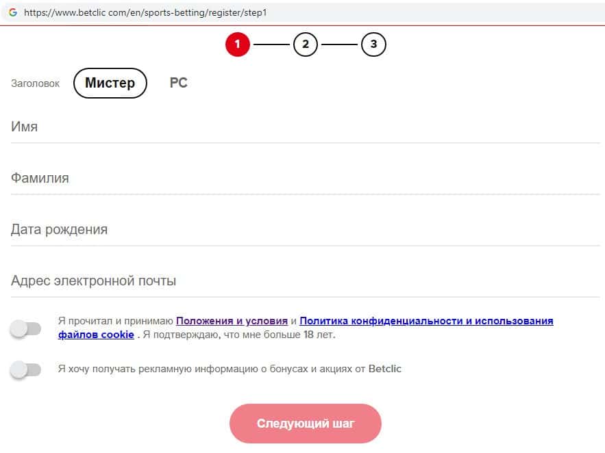 Мошенники Бет Клик предлагают пользователям заполнить бланк сбора данных, где просят указать свое имя, фамилию, а также адрес электронной почты.