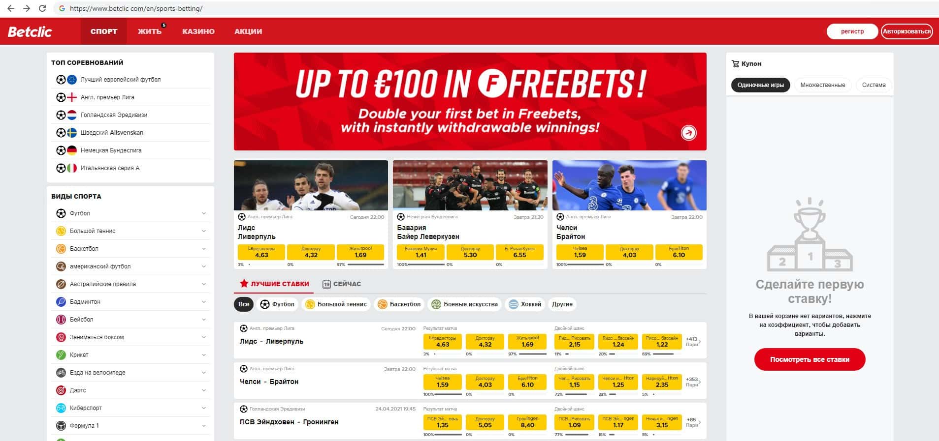 В данном разделе предлагаем увидеть скрин главной страницы интернет-сервиса букмекера BetClic, помните о том, что такие проекты часто меняют название домена своего сайта.