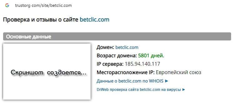 Проверка онлайн-сервиса аферистов Бет Клик на trustorg com показала, что возраст домена к моменту написания статьи составляет 5801 день, вероятнее всего домен купленный.