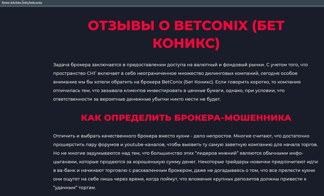 - Отзывы о минусах псевдо-биржи Бет Коникс