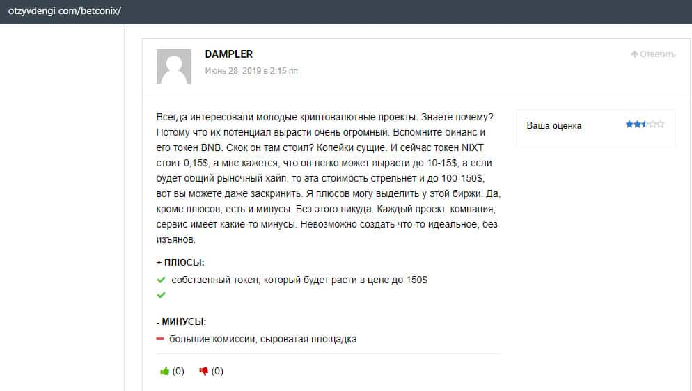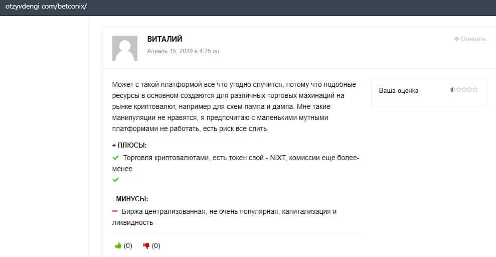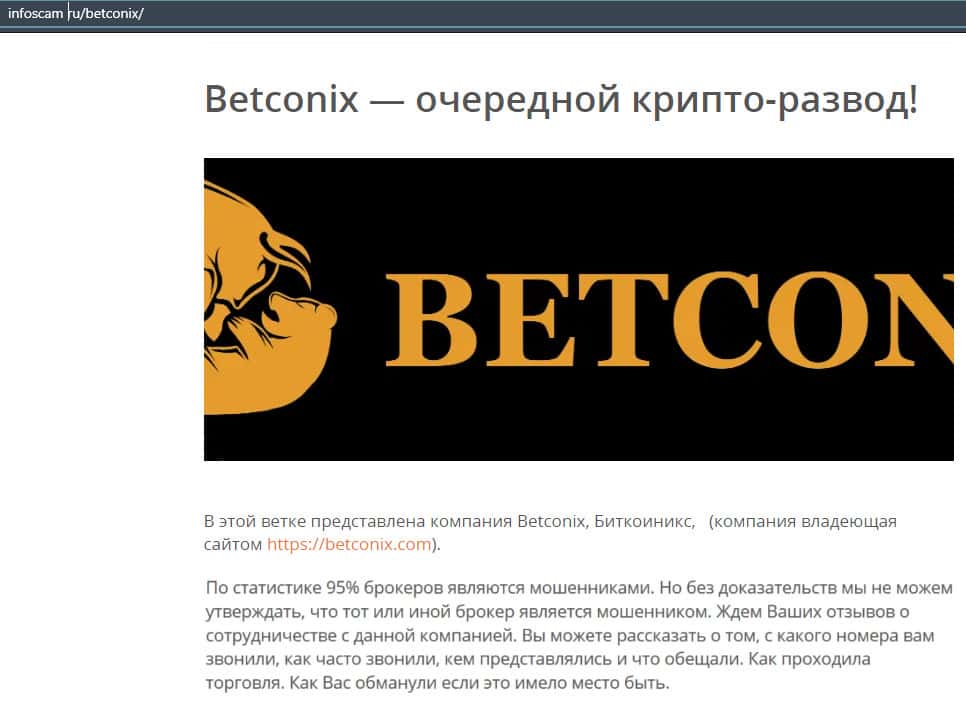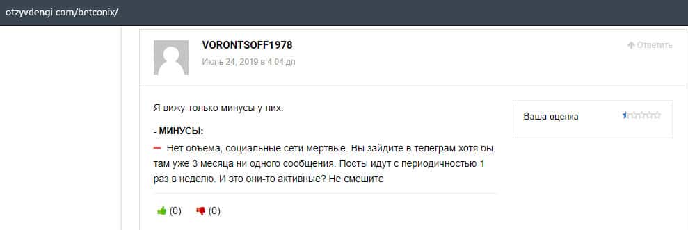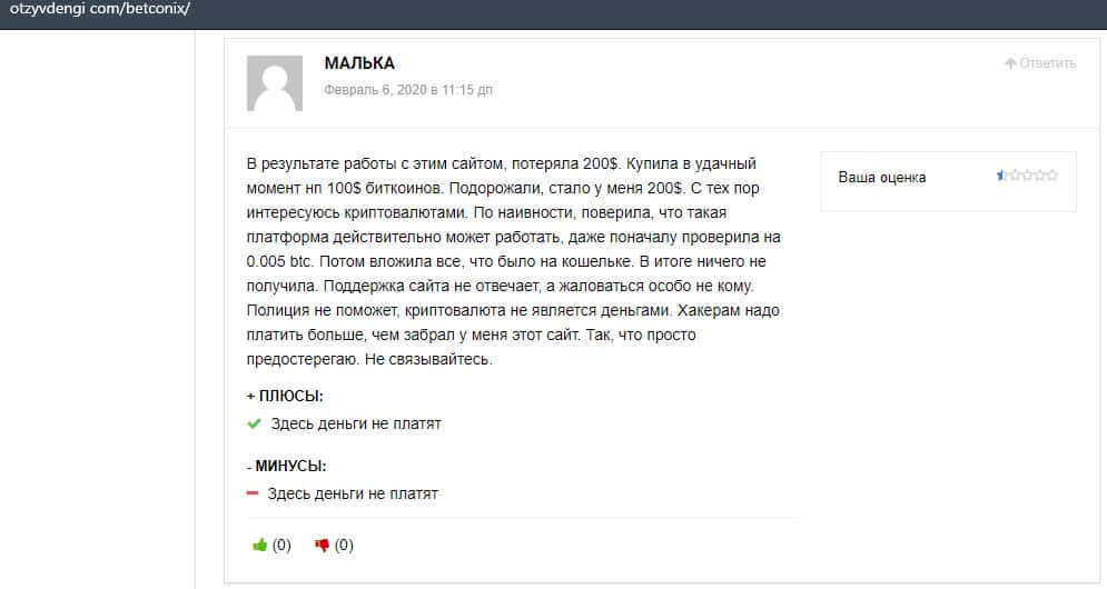 Ниже представлен отзыв от реального человека, который указывает, что он не доверяет мошеннической криптовалютной контор BetConix, так как на это есть множество причин.