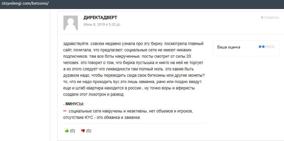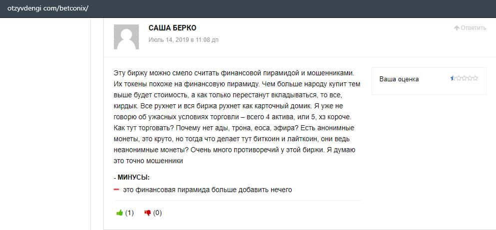 Отзывы о минусах псевдо-биржи Бет Коникс