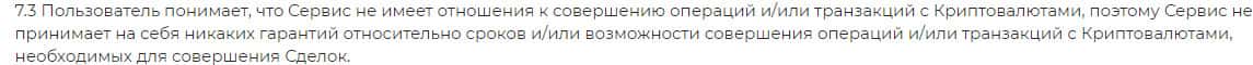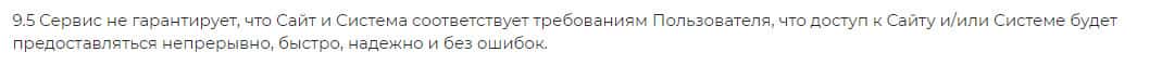 Мошенники крипто-биржи Бит Коникс также не гарантируют, что они будут предоставлять сервис высокого качества, а также не отвечают за его нормальную работу.