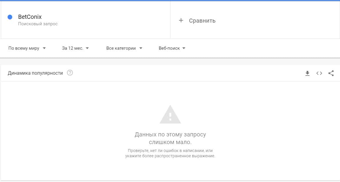 Сайт конторы BetConix не популярный по запросу самого сайта "betconix.com" и набрал по Гугл Трендс 0 показов за месяц.