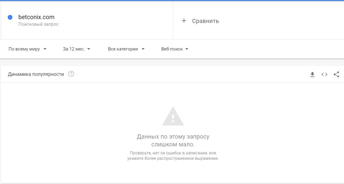 По поводу запроса сайта лохотрона "betconix com" без точки, здесь уже в системе Гугл такие же показатели и такого рода запроса вообще не вводят.