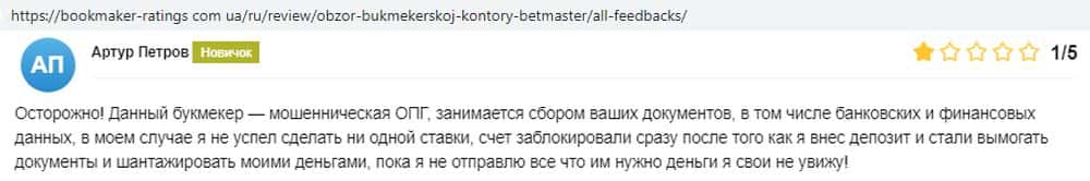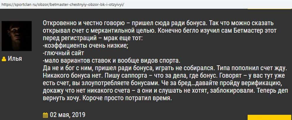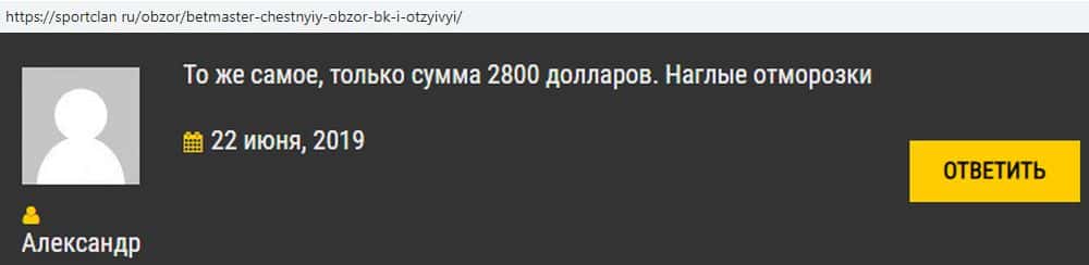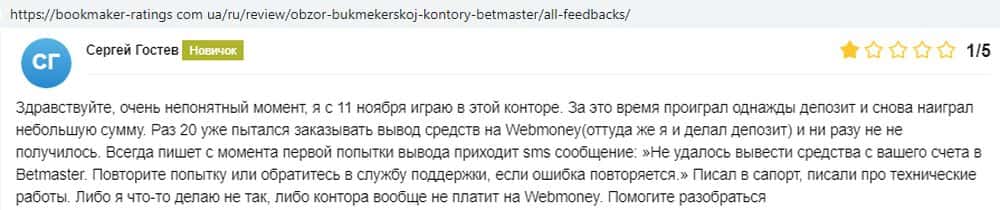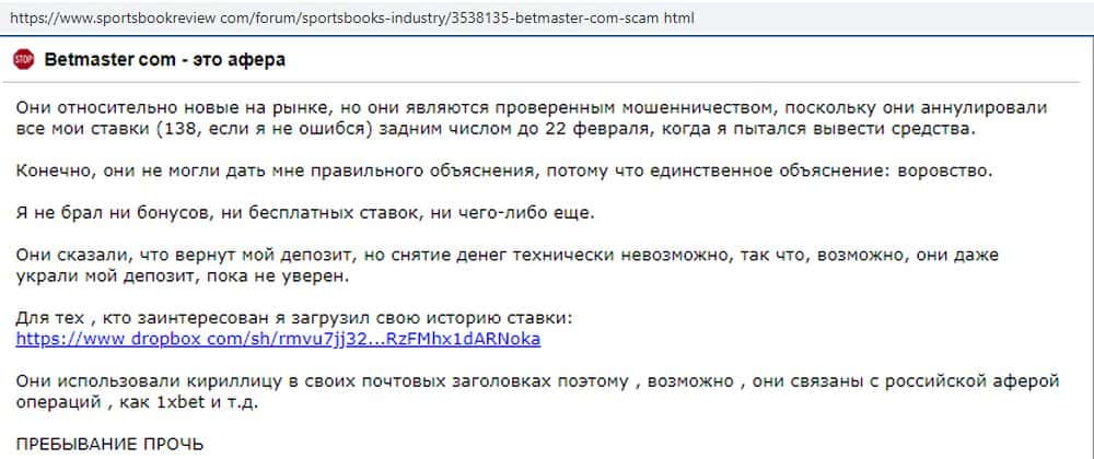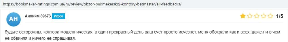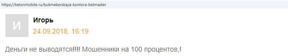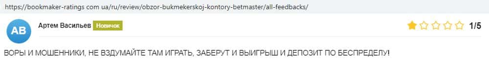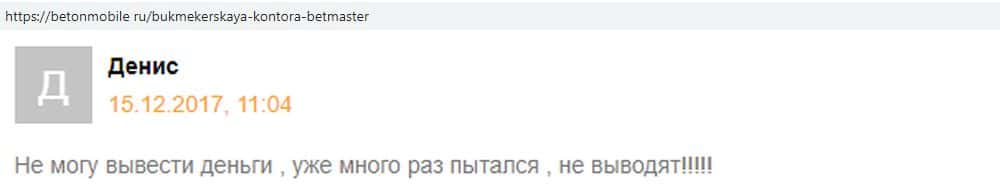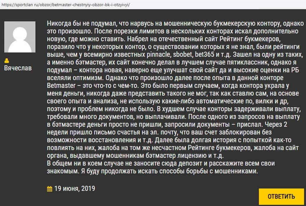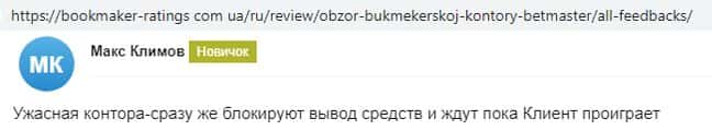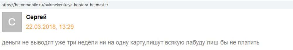 Отзывы реальных игроков о скам-конторе Бет Мастер