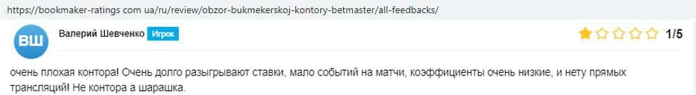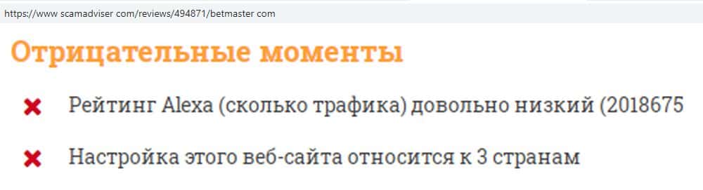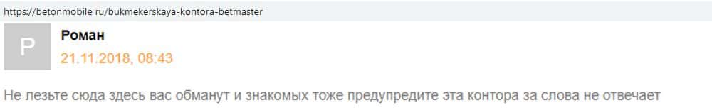 Ресурс скамэдвайзер ком обращает внимание, что сайт махинаторов Бет Мастер редко посещают. Здесь же пострадавшие оставили несколько негативных отзывов о мошенниках.