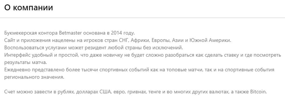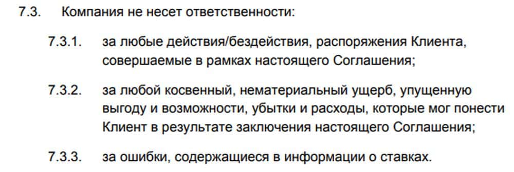 Естественно, что хапуги Bet Master отказываются брать на себя ответственность за любые убытки клиентов. Но при этом они не отвечают даже за информацию на собственном сайте.