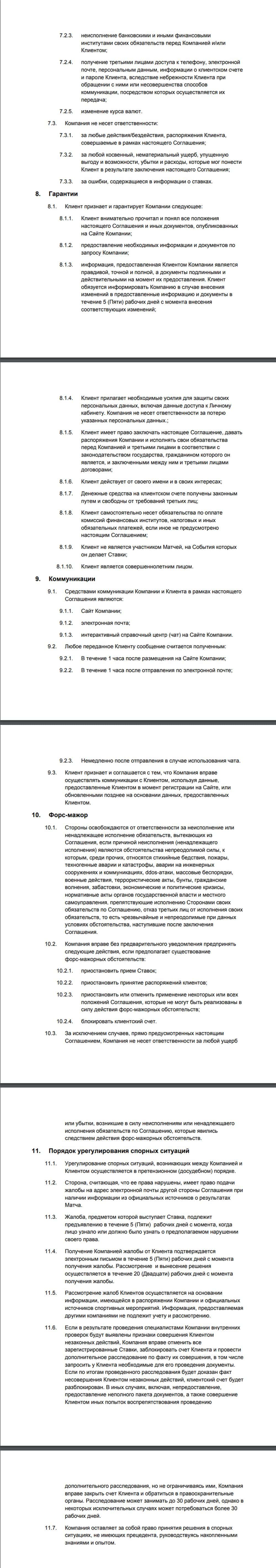 Ниже приведен полный текст клиентского соглашения, который прописано так, чтобы игрок оставался в минусе, а то и вовсе терял личные средства, попавшие на счет кидал Бет Мастер.