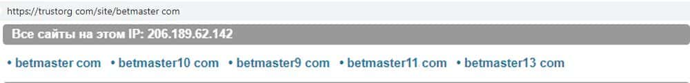 Согласно интернет-ресурсу трасторг ком, на одном IP с основным сайтом мошенников Бет Мастер сидит несколько пронумерованных зеркал, точно похожих на основную платформу: