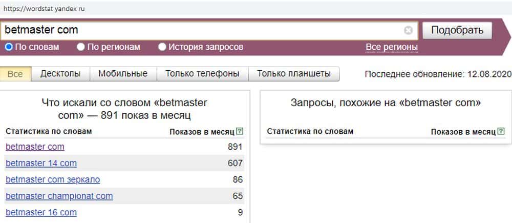 Популярность лохотрона Бет Мастер среди пользователей Яндекс