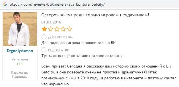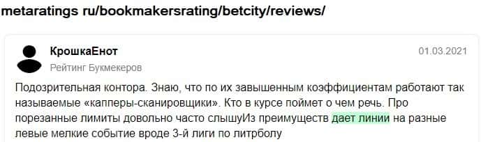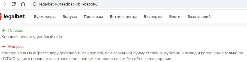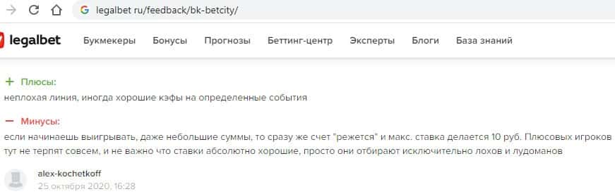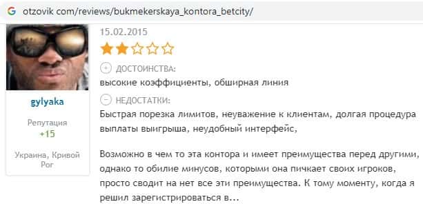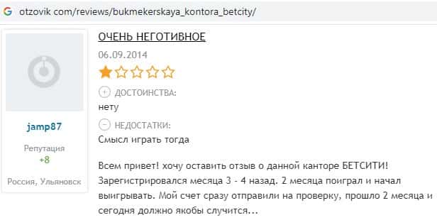 Опытные игроки, которые уже играли ранее в букмекерских конторах, все в один голос говорят то, что Бет Сити - это просто говноконтора, где тебя используют и выкинут.