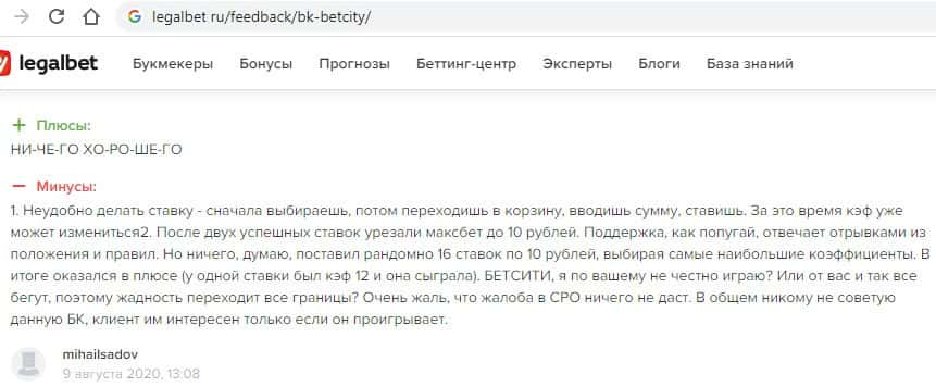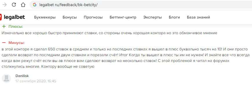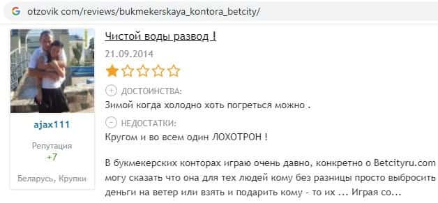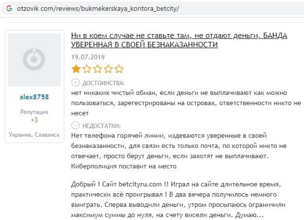 Отзывы о мошенниках Бет Сити на разных сайтах