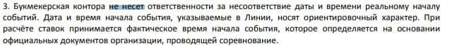 Если время и дата реального начала событий у жуликов не совпадает и вы из-за этого теряете деньги, то они тоже не несут никакой ответственности.