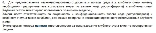 Также мошенники снимают с себя ответственность, если ваш клубный счет используется третьими лицами. В том числе ими.