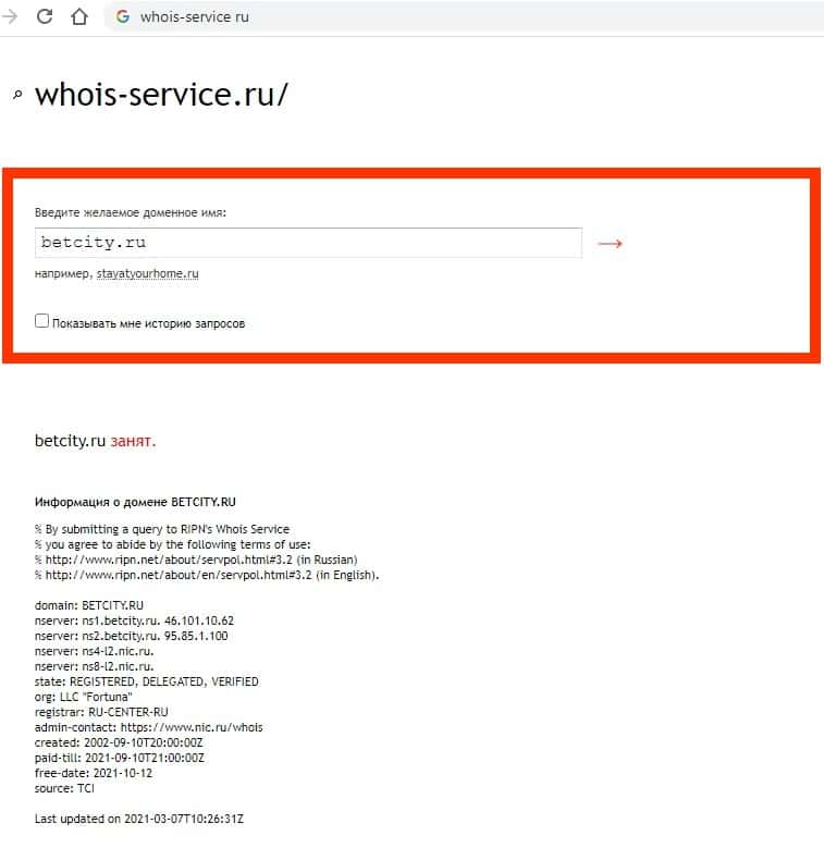 Домен жуликов betcity ru существует 6753 дня