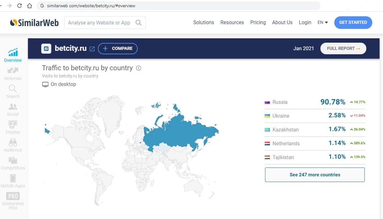 Анализ источников трафика мошенников BetCity Ru показывает, что основной трафик к ним приходит именно из России. Отсюда у них больше всего жертв.