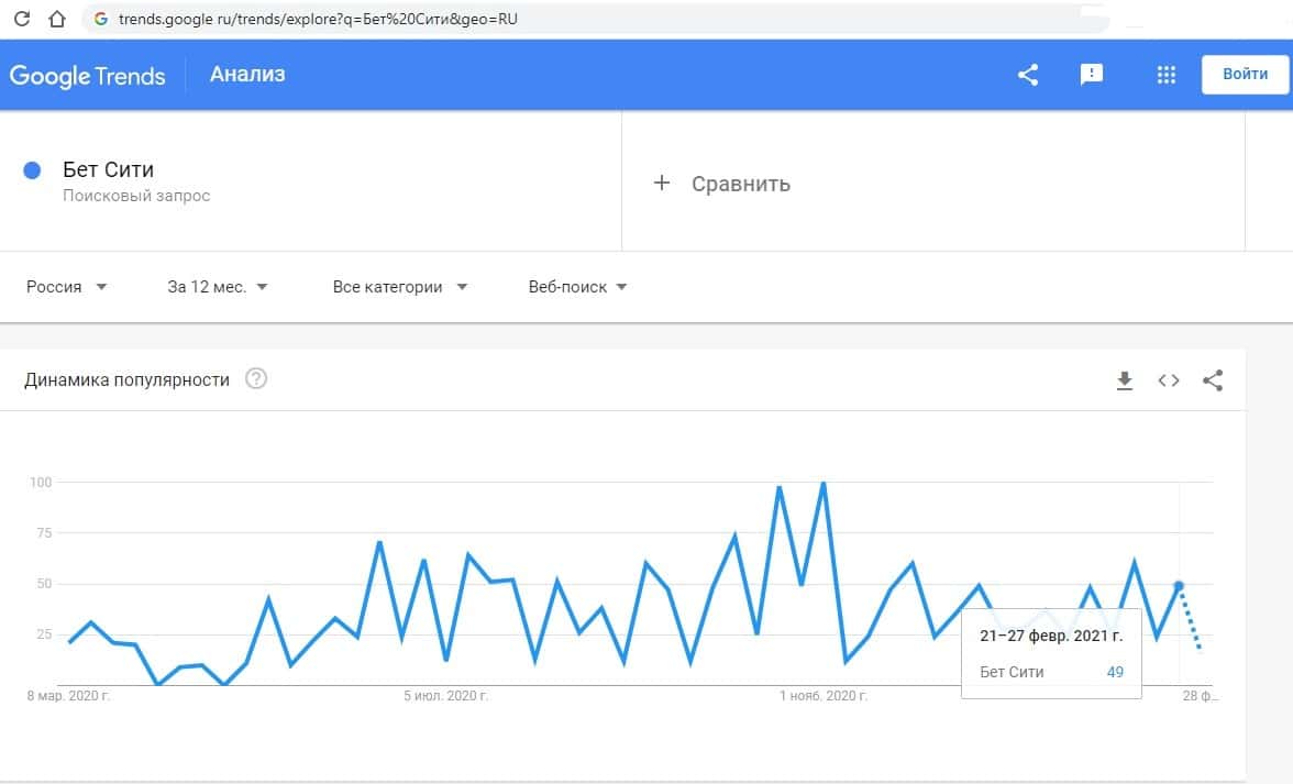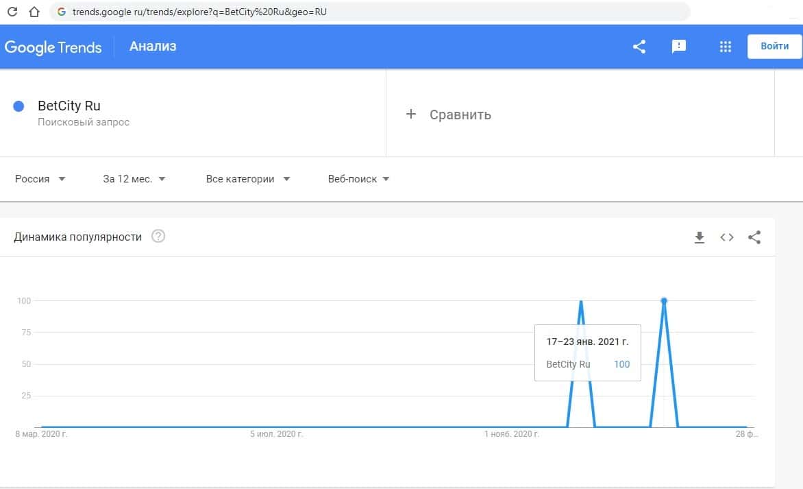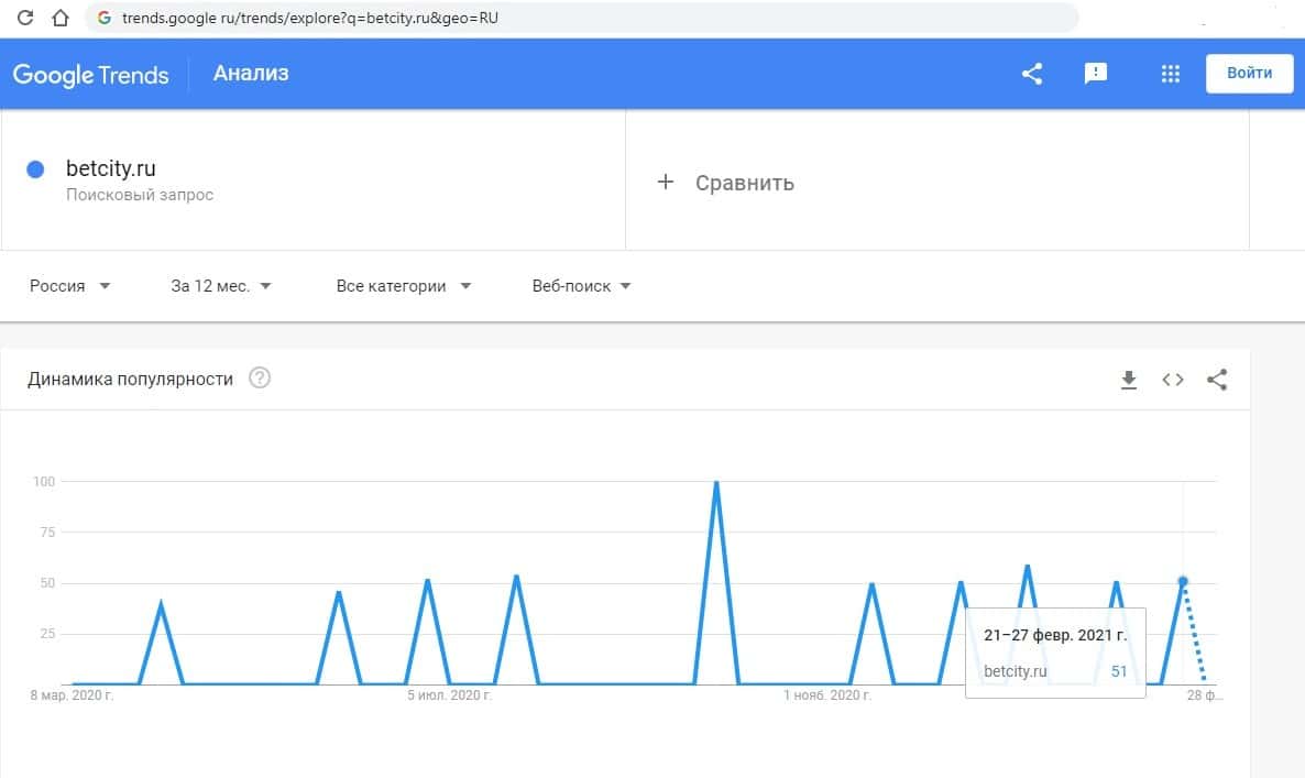 - Какое количество запросов по betcity ru выдает Google?