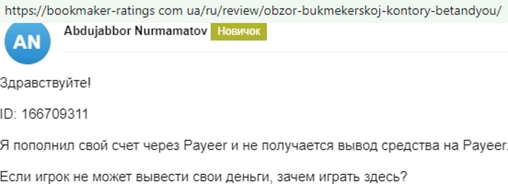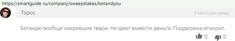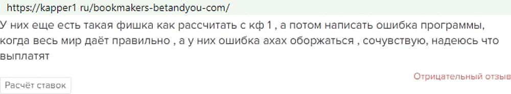 Пользователи сети называют букмекерскую помойку Бетанд Ю лохотроном