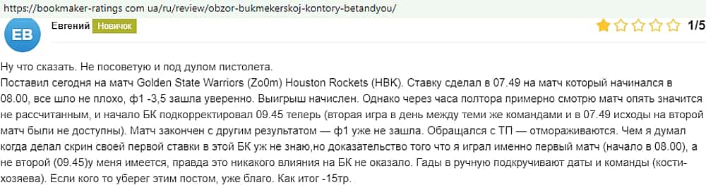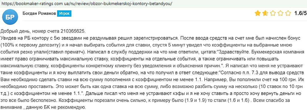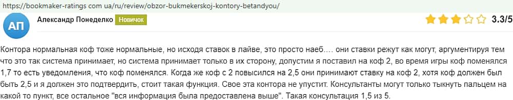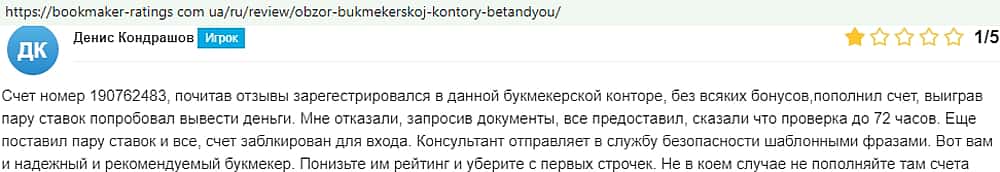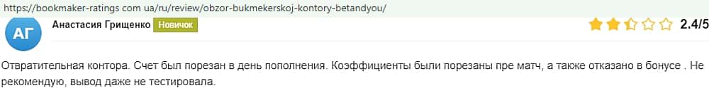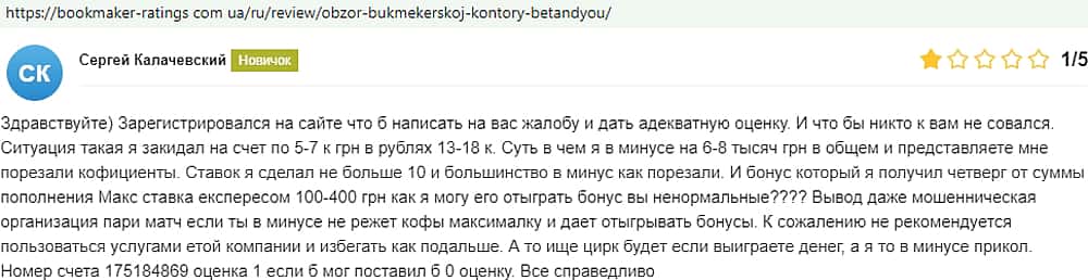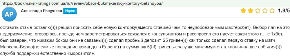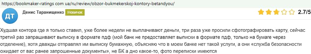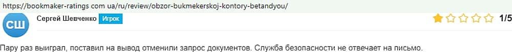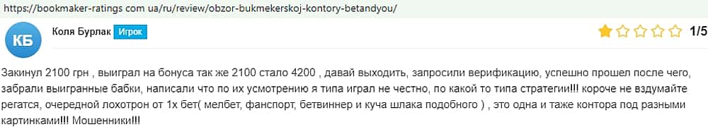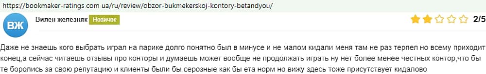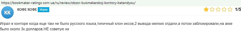 - Обзоры других сайтов на недобукмекерскую контору Бетанд Ю