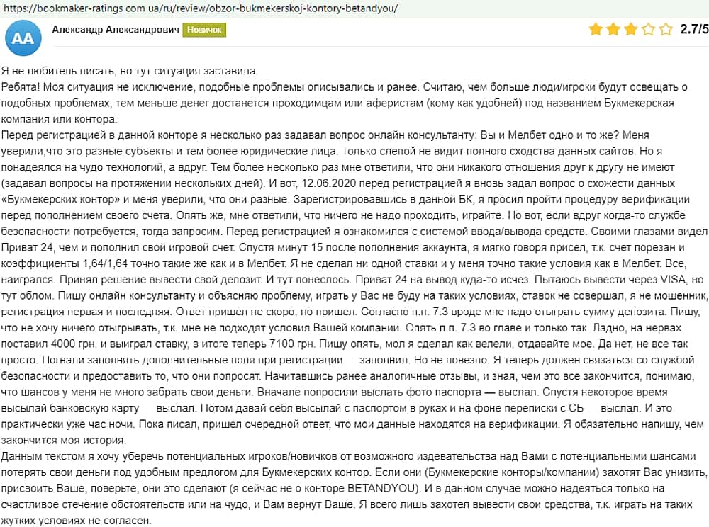 Сведения об мошенниках BetandYou необходимо распространять КАК ТОЛЬКО МОЖНО масштабно, чтобы оградить от их рук наших соотечественников.