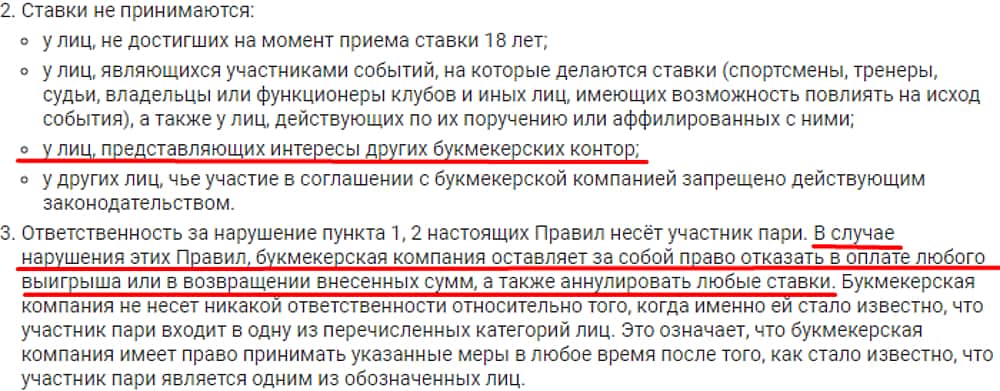 И еще один похожий пункт, в котором аферисты BetandYou сообщают, что не примут ставок у человека, который нарушает общественный порядок. Как интересно они это будут узнавать?