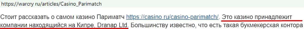 Организация Dranap Ltd, которая считается родительской для аферы Бетанд Ю и указанных выше лохопритонов, под своим крылом держит еще одного недобукмекера - шарагу Пари Матч.