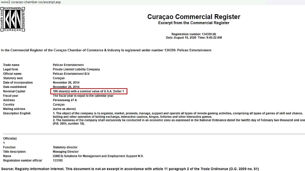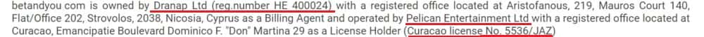 Да и сама организация, которая занимается платежами в лоховозке BetandYou - мутная. Имеет регистрацию в дешевом оффшоре Кюрасао и уставный фонд всего 100 долларов.